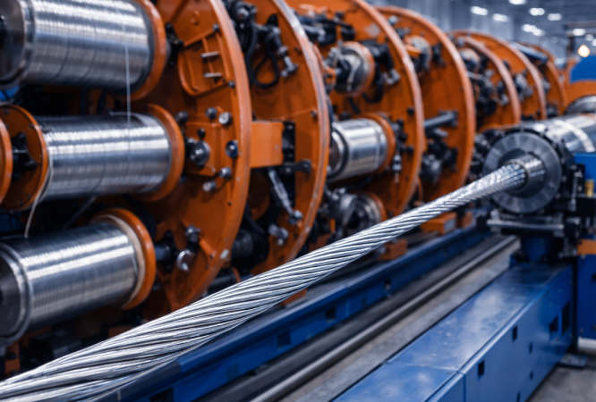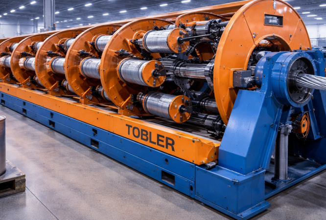 At Rana Afghan, the Tobler stranding machine is used for high-precision conductor manufacturing. It twists one central core wire with six surrounding wires in a single operation, ensuring uniform geometry and mechanical strength.